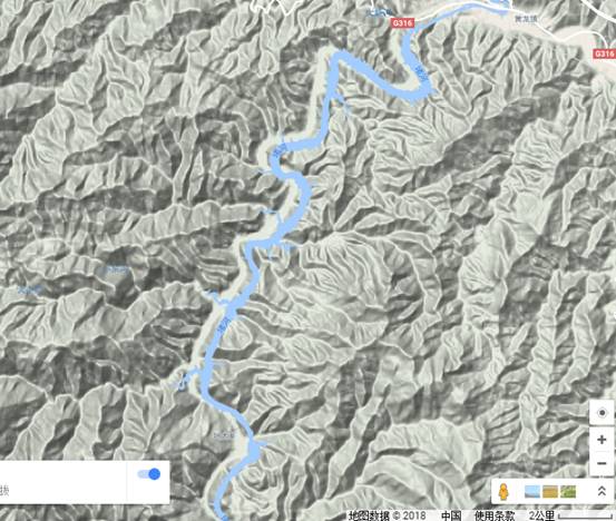 本監(jiān)控點,是監(jiān)控點5與黃龍大壩之間,最后一個監(jiān)控點,也是處于主河道的V字形拐彎處。海拔約338米。